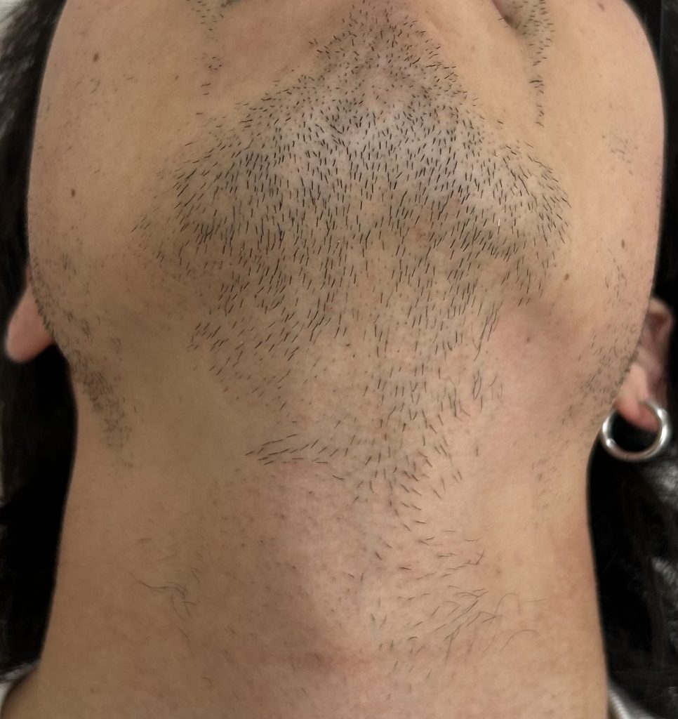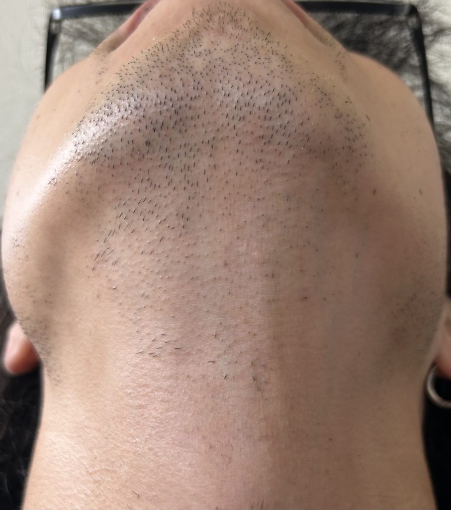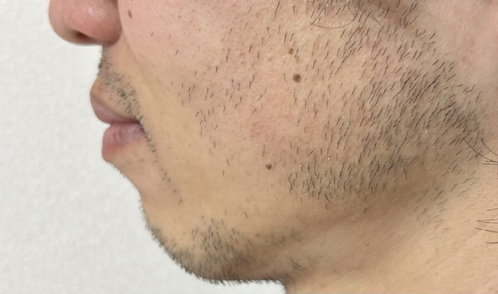 このお客様は全身の毛が濃く剛毛なタイプで、顔周りは特に青ヒゲが目立ちます